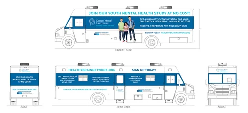 Vehicle wrap design for the Healthy Brain Network, a community-based research program providing mental health evaluations and follow-up resources at no cost to 10,000 children.