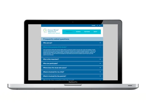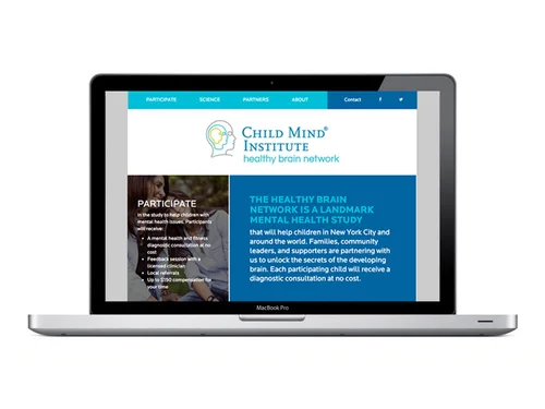 Web design for the Healthy Brain Network, a community-based research program providing mental health evaluations and follow-up resources at no cost to 10,000 children.